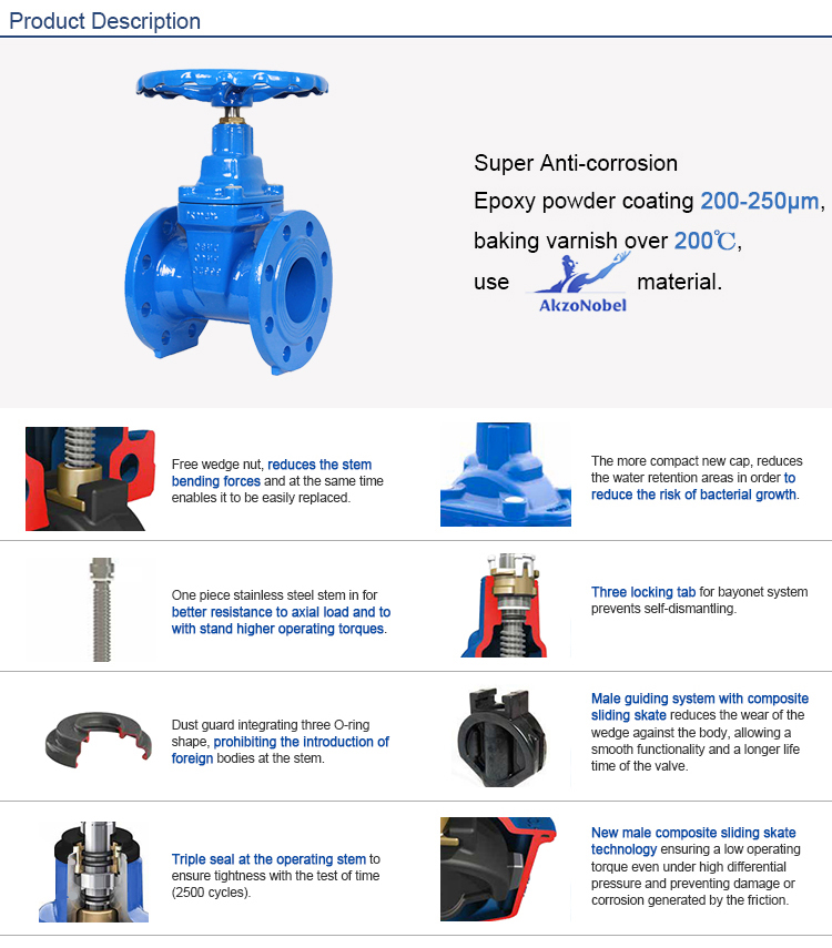 - Corps de vanne: fonte ductile: GGG50