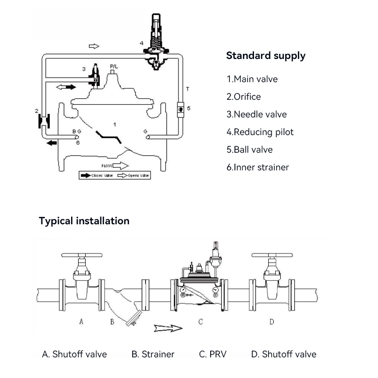 Questa valvola è un regolatore preciso e pilotato in grado di mantenere la pressione a valle entro un limite rideterminato.