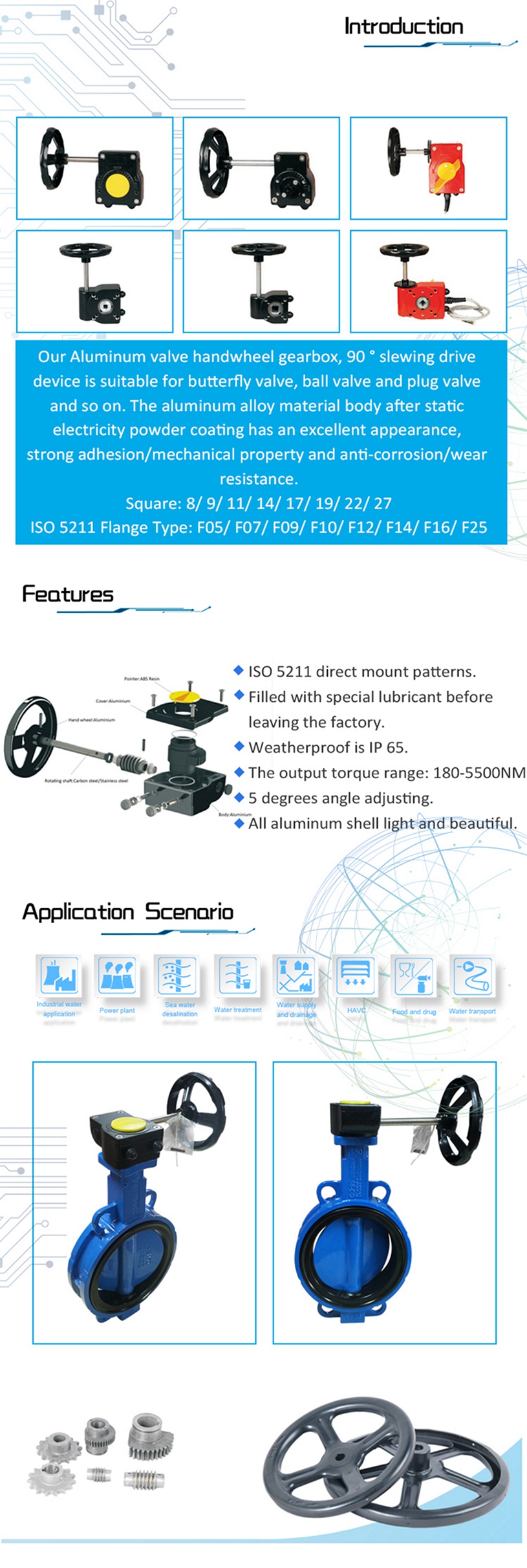 - - The output torque range: 180-5500NM.