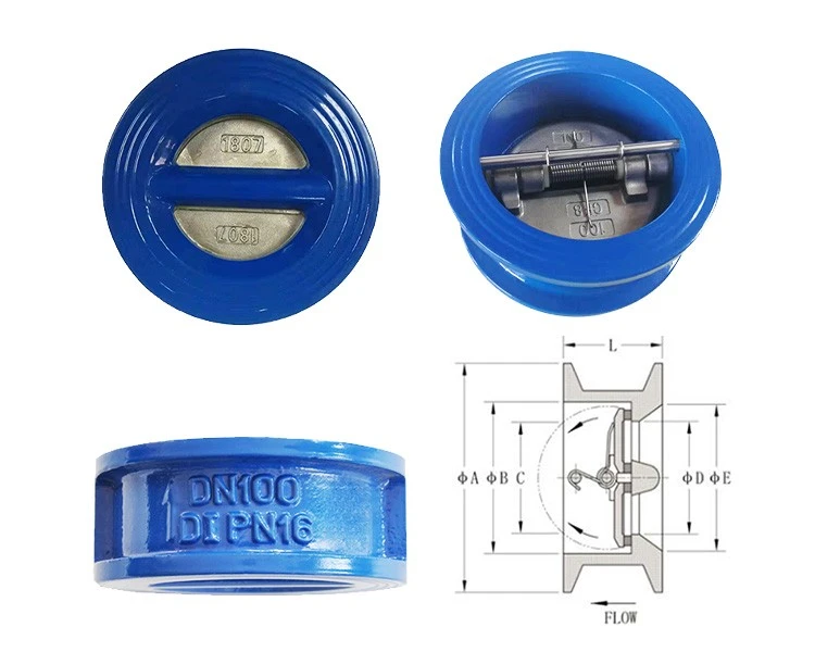 Cast Iron Dual Plate Non Return Check Valve PN16 8 Inch Wafer Type for Water Pipeline