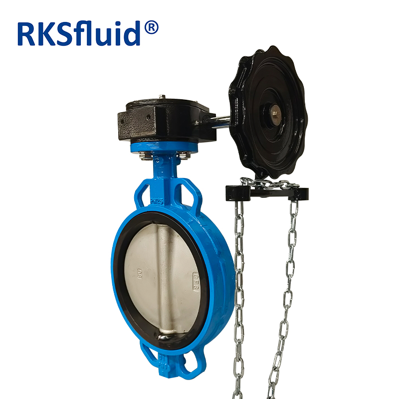 Customized DN150 DN200 PN25 cast ductile iron CF8 wafer type gearbox operated butterfly valve with chain wheel