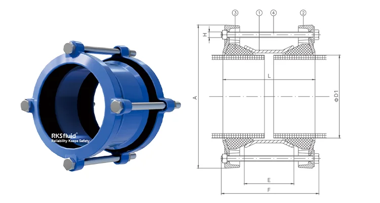 Китайский производитель ковкого чугуна, труба из ПЭВП, универсальная широкодиапазонная гибкая муфта, легкий вес для трубного соединения