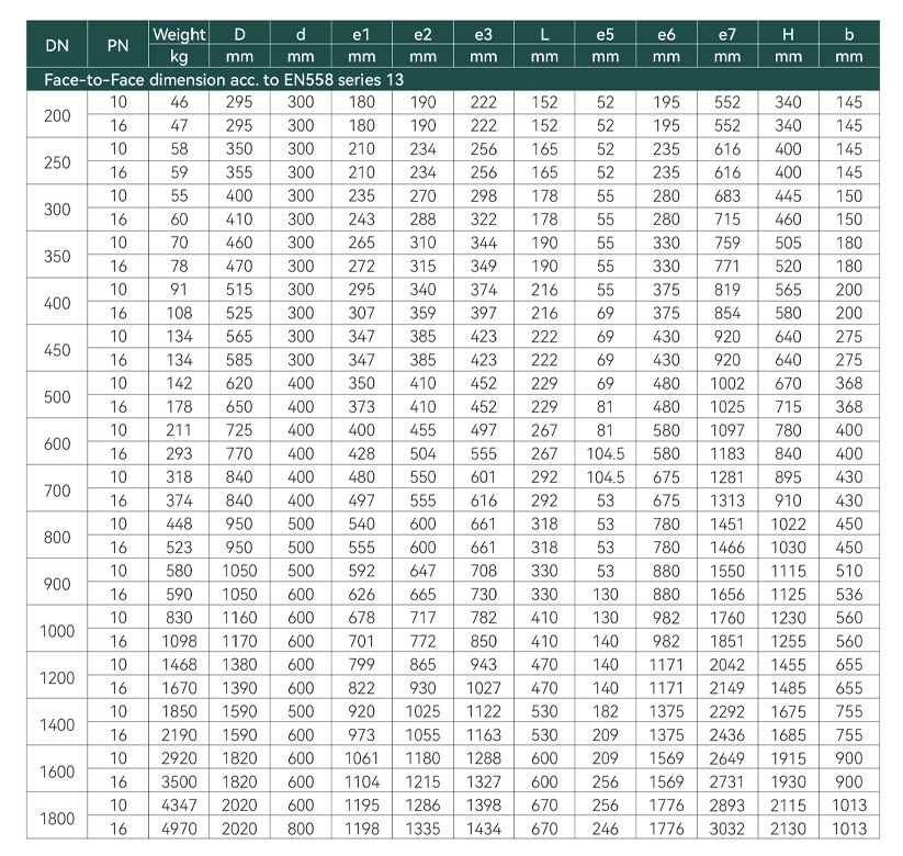 - ระดับความดัน: PN10, PN16, PN25
